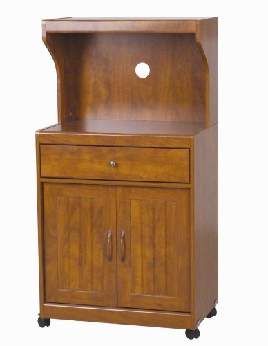 The Kevin Microwave Cart satisfies both a need for additional cabinet space as well as microwave storage. A great way to save space and reorganize any kitchen, this multipurpose cart is a great addition to any home. The bottom cabinet doors feature metal handles that provide a great complement to the oak finish. The single drawer and three shelves provide compact kitchen storage for a wide range of items – including small kitchen accessories, utensils, dry goods, as well as plates and baking dishes. Made with durable, laminate wood, this-piece is easy to assemble and appreciate.Available at Amazon Check Price Now!
