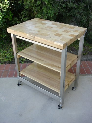 Expand your kitchen counter and storage space in an instant. the deluxe flip and fold island by oasis concepts has an elegant butcher block top design made of solid wood parquet. this folding island has a rectangular butcher-block top that provides an impressive 4 square foot of prep area. together with the two large shelves, you get a total of 10.4 square foot of work surface or convenient storage space. two hardwood shelves make room for cookbooks, pots and pans or small kitchen appliances. the patented precision-hinge folding mechanism makes the cart easy to open and fold. when you no longer need the cart, it folds to 4-3/4-inch, making it easy to store out of sight. you can't do that with permanent counters or islands. the top and shelves are made of hardwood and the frame is made of stainless steel. it comes fully assembled in natural finish.Available at Amazon Check Price Now!