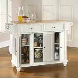 Crosley Furniture Cambridge Natural Wood Top Kitchen Island, White